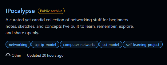 A curated yet candid collection of networking stuff for beginners — notes, sketches, and concepts. Available on Github only.