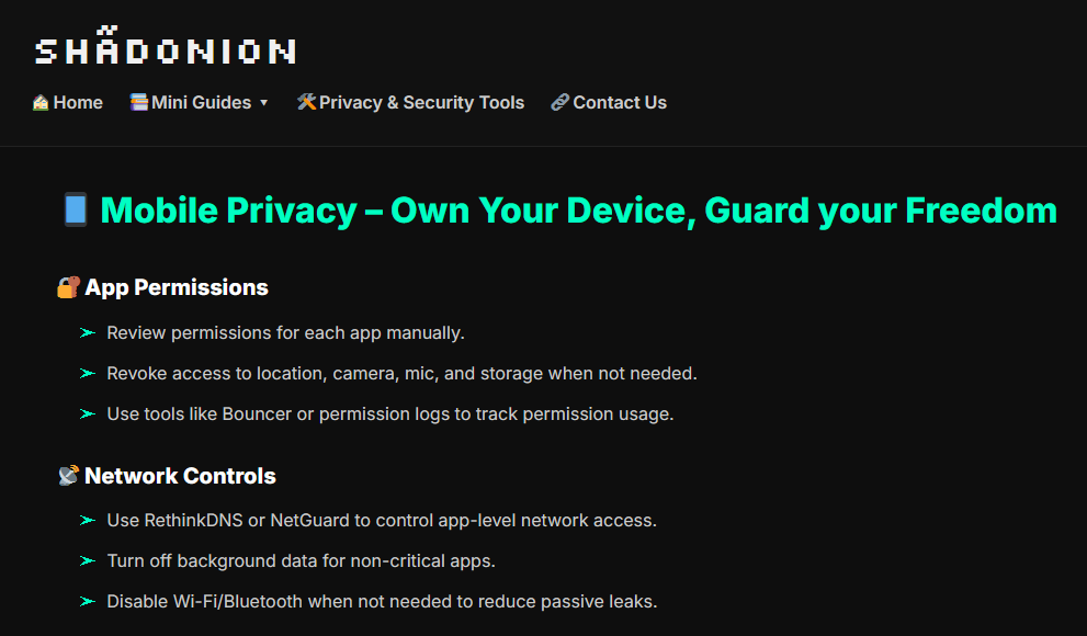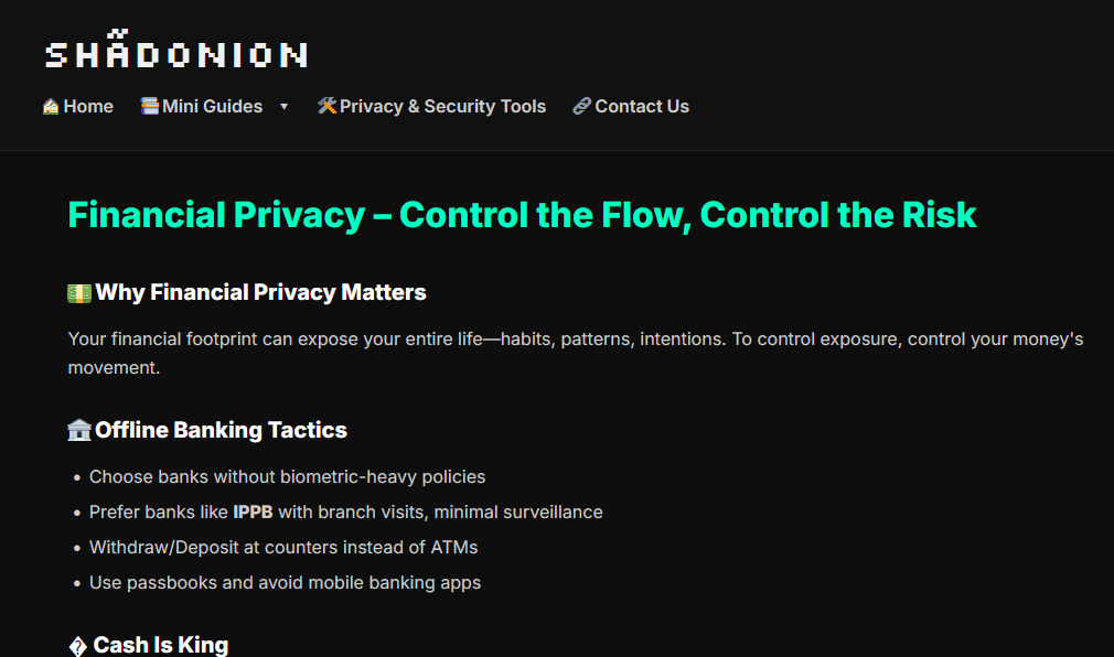 Shadonion deliberately avoids making guarantees. It assumes readers want less tracking and better decision-making — not magical invisibility.